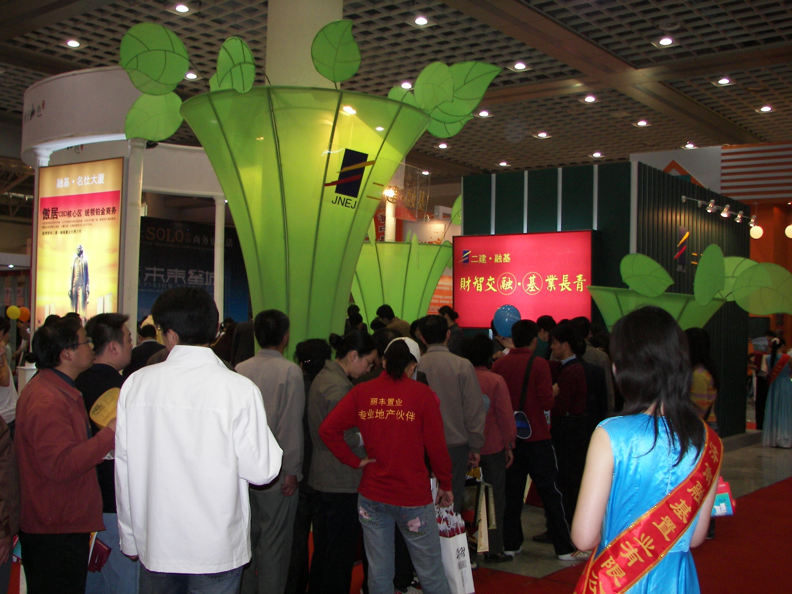 除融基·湖光山色,我公司還推出了2007年的三個明星項目:電影機械廠、濼源大街名士大廈、乳山天海人和三期。這三個明星項目畫面被制作成燈箱分別懸掛于展臺前四個羅馬柱之間,配合著明亮的燈光非常有特色,引得路人紛紛駐足。
